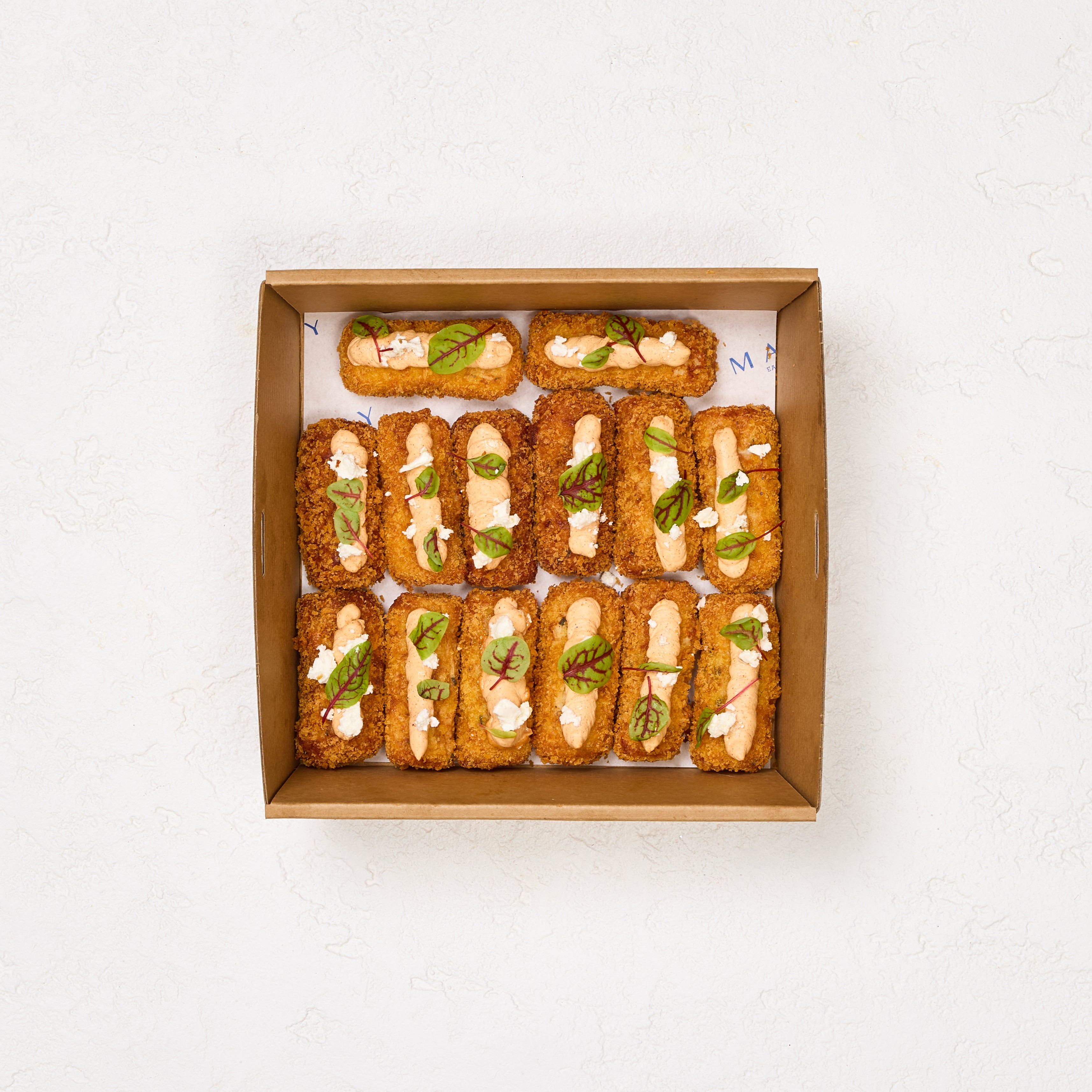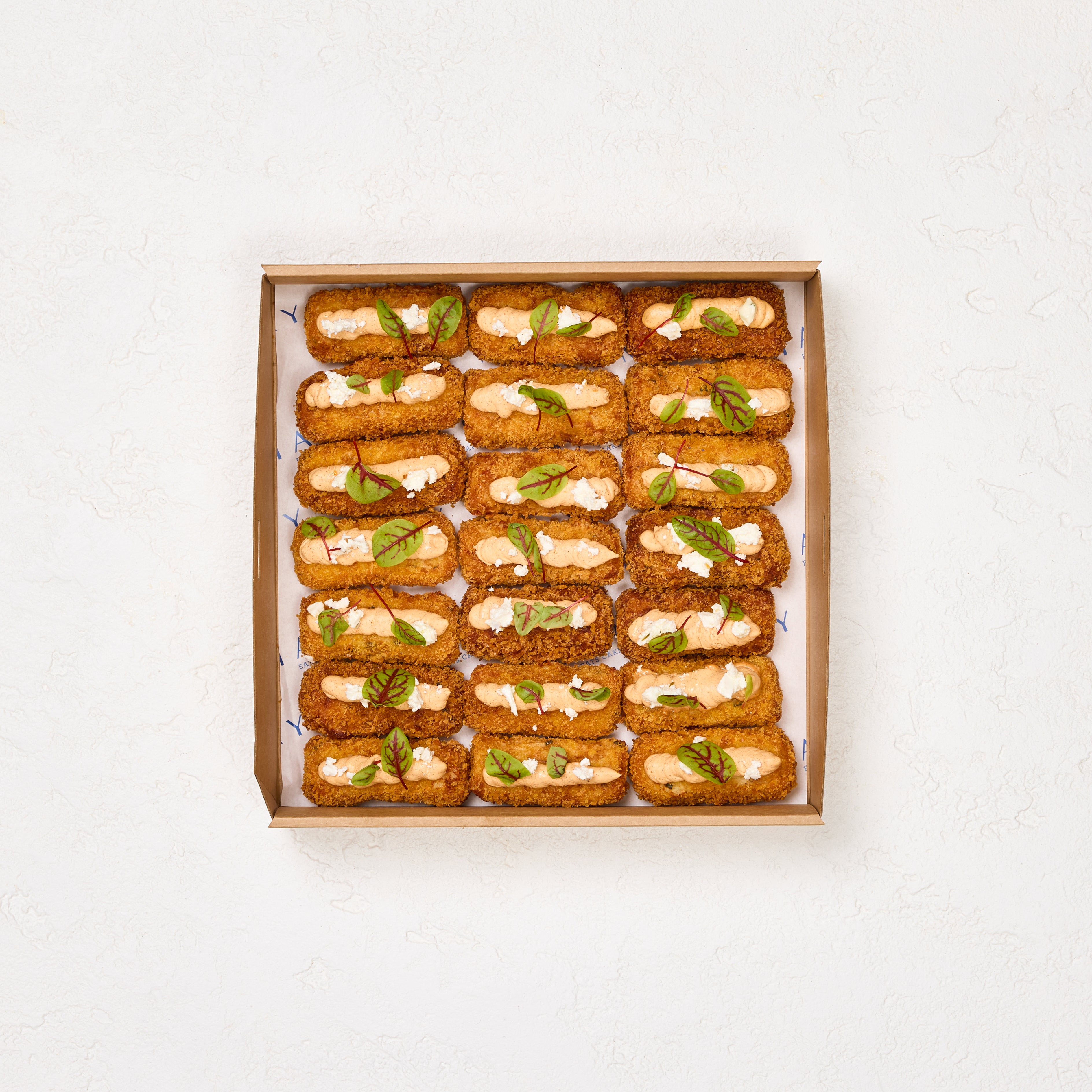 Cheesy potato crumbed in panko, topped with fetta and smoky aioli