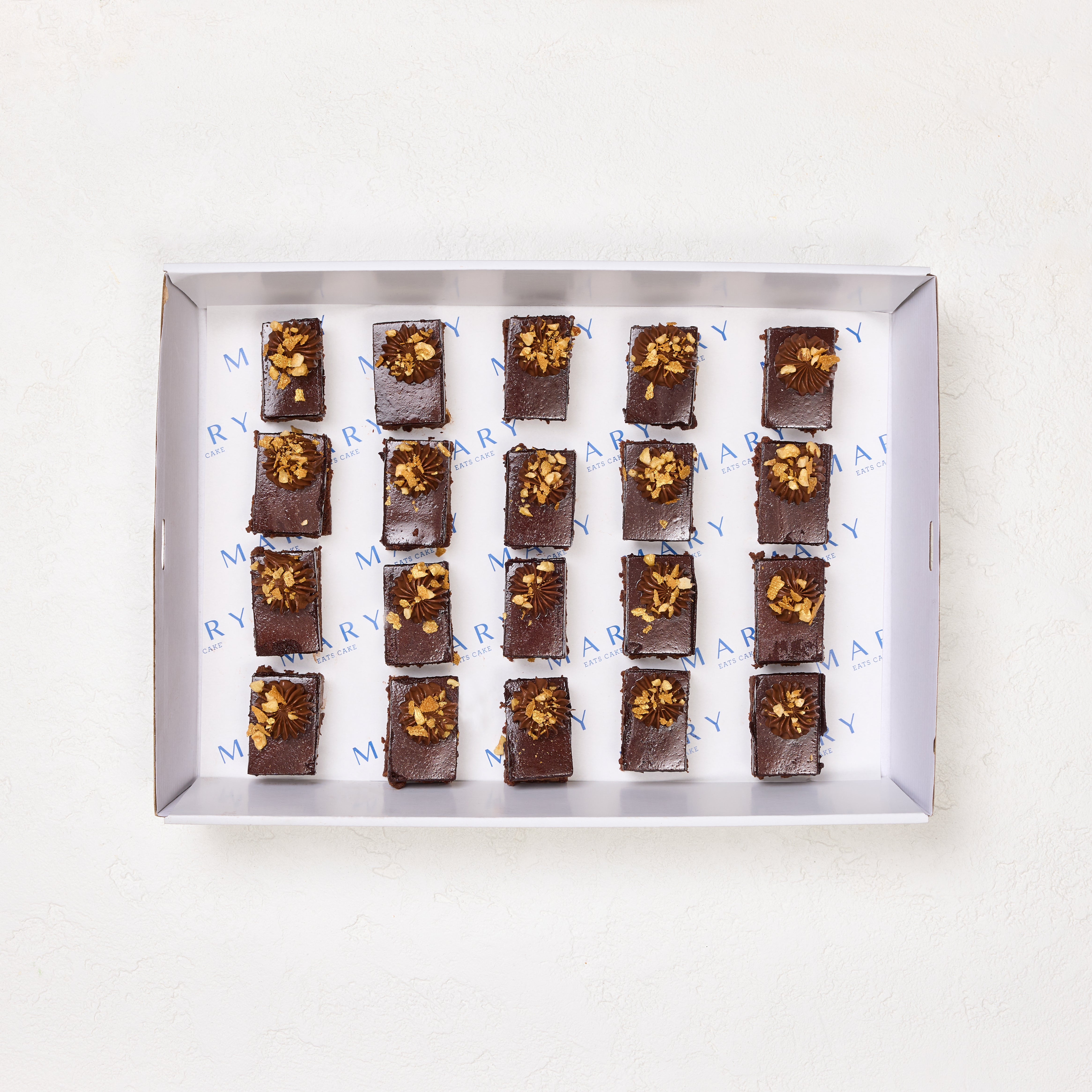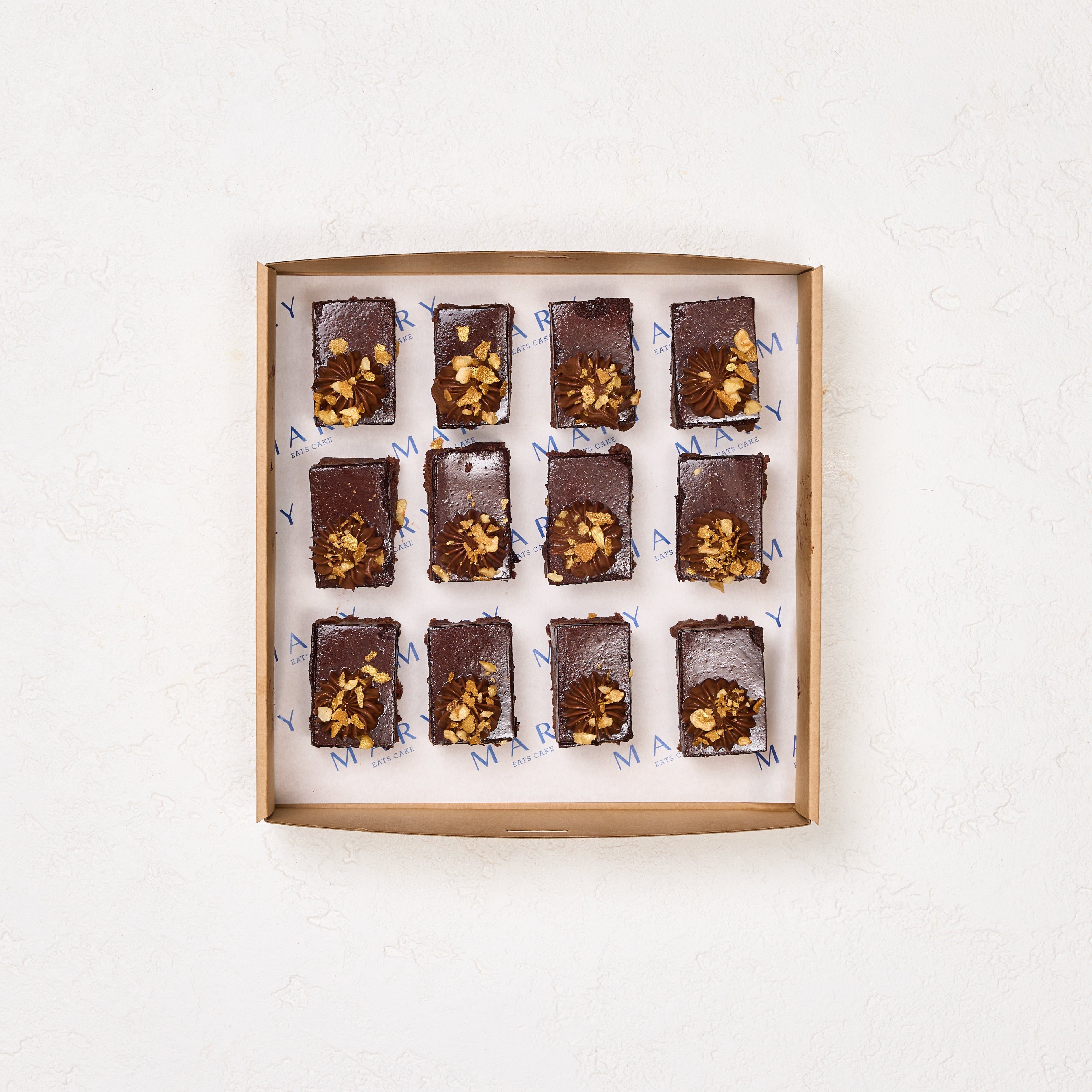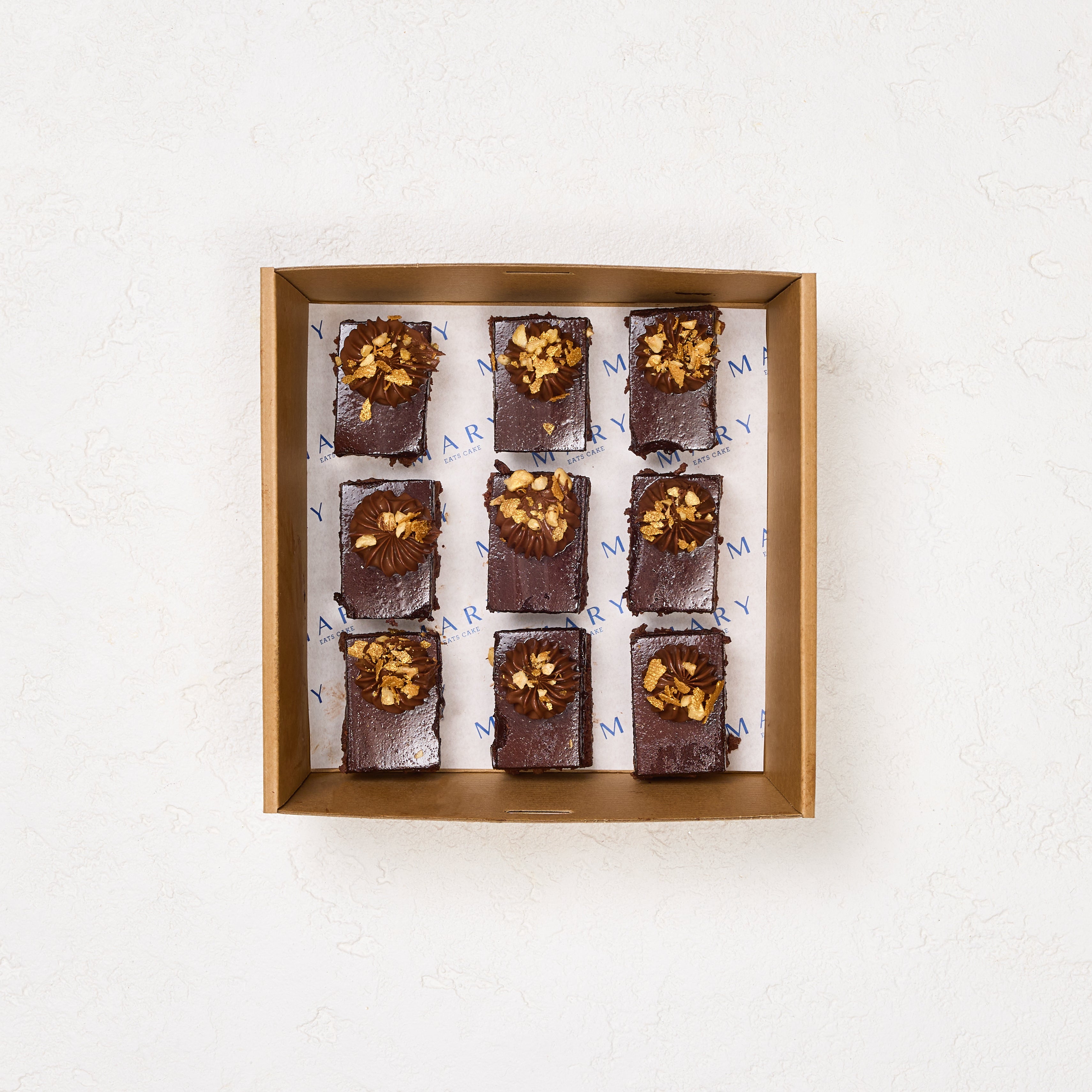 Layers of hazelnut financier, chocolate crèmeux, and dark chocolate glaze, finished with golden feuilletine