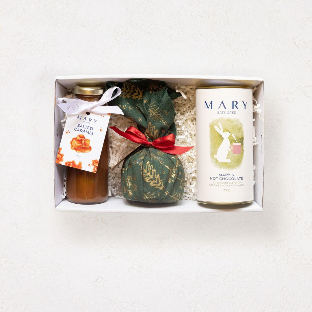 Enjoy a traditional Christmas pudding, paired with Mary’s salted caramel and luxurious hot chocolate, a comforting combination perfect for cosy holiday moments.