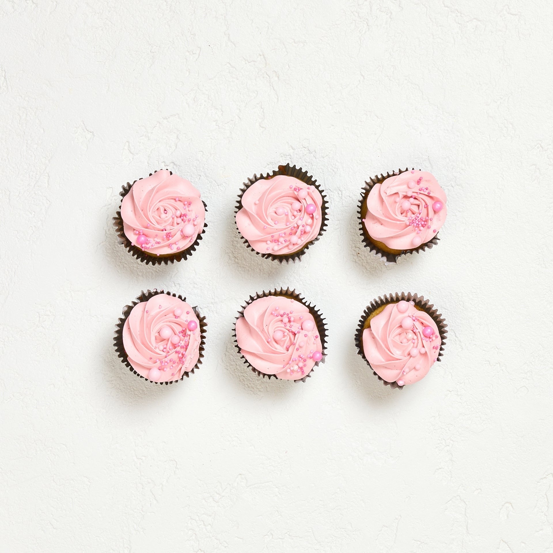 Matching cupcakes are only available with the purchase of the accompanying celebration cake. Available in boxes of 6, 12, 18 and 24 cupcakes